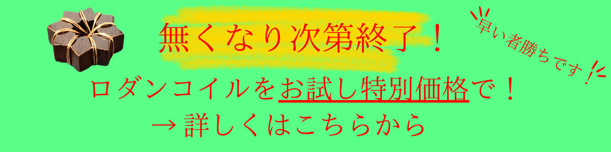 無くなり次第終了の個数限定で、ロダンコイルを送料無料&お試し特別価格にて!