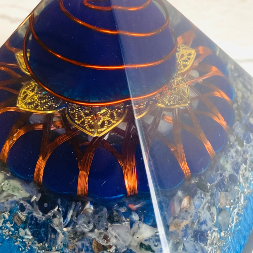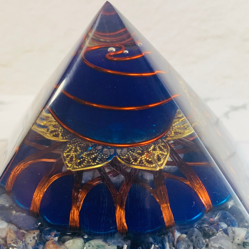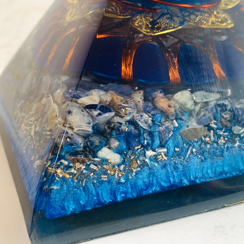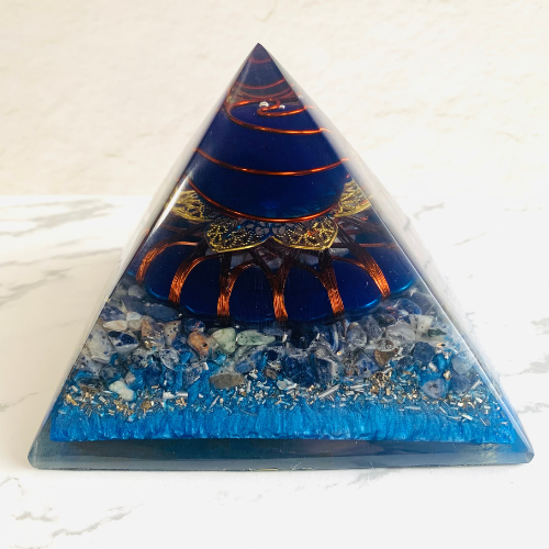 幸運を呼び込むとされる、ブルーカラーとラピスラズリが組み合わさった、エレガントさ漂う、インテリアとしてもピッタリなピラミッド作品です。